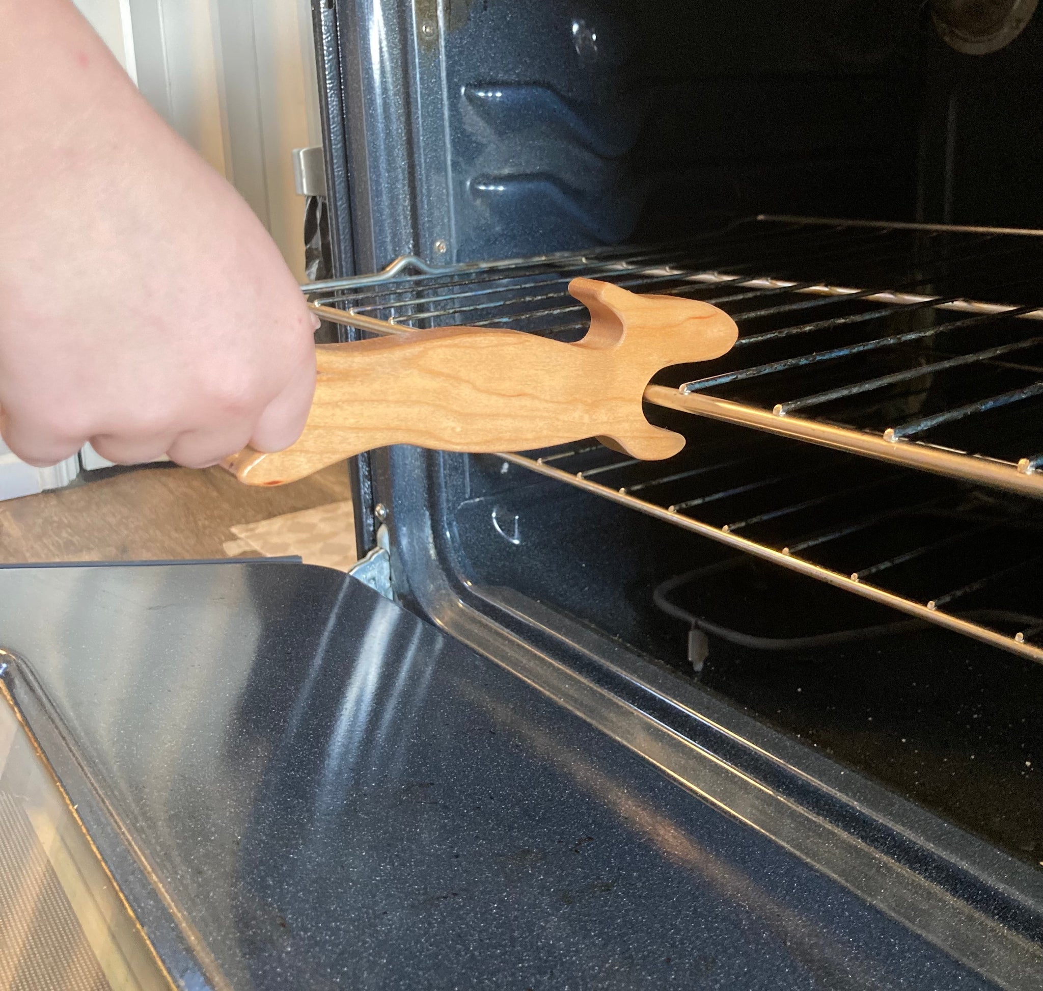 Keep hands safe and baking easy with our handcrafted wooden oven pulls. Each one is made in-house from natural, USA-grown hardwood—your choice of Maple, Cherry, or Walnut. Designed to help you easily pull out hot oven racks or push them back in, they protect your fingers from accidental burns while adding a warm, functional touch to your kitchen.